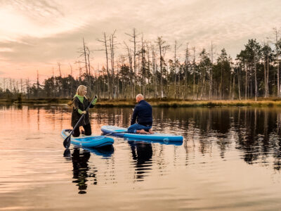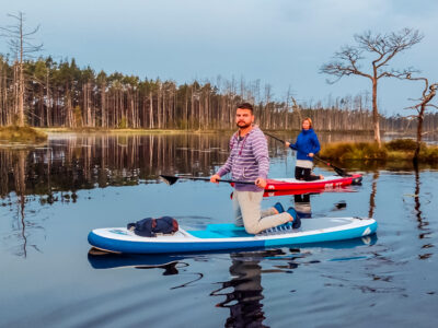 Kad diena tuvojos beigām, bet vakarā vēl gribas kaut ko īstu un pabūt pie dabas SUPerīgā vietā, tad pievienojies mums SUP Piedzīvojumā, lai dotos Ķemeru tīrelī sagaidīt saulrietu. Tur nav ne troksņa, ne steigas, tikai klusums, ūdens, pa kādai dzērvju dejai un saulrieta krāsas, kas mainās ar katru brīdi. Airējam starp saliņām, purva labirintam un zemu sauli, kas lēnām pazūd aiz purva. Vienkārši vakars, kas paliek atmiņā bez īpašiem plāniem, bet ar to sajūtu, ka viss ir tieši laikā.