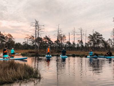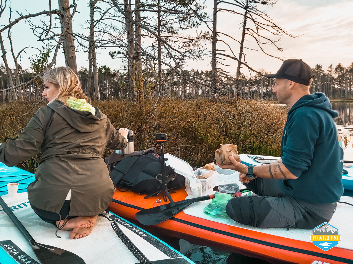 Kad SUP ir iejūgts, airēšanas prasmes jau tādas, ka liekas varētu izcīnīt olimpisko medaļu, tad arī saulīte sāk iet uz rietu un te nu tas ir “Saulriets purvā”. Safotogrāfēsim skaistas bildes, tā lai Instagram birst komentāru jūra ar tekstiem “WOW, tik skaisti”, “Es arī gribu, nākošreiz paņem mani līdz”, un tad ieturēsimies ar uzkodām turpat purvā, jo pēc dienas nedarbiem un visām SUP aktivitātēm gribēsies kaut ko uzkost, tātad ir īstais laiks kādam veldzējošam dzērienam un kādam našķim, lai papildinātu enerğijas rezerves atpakaļceļam!